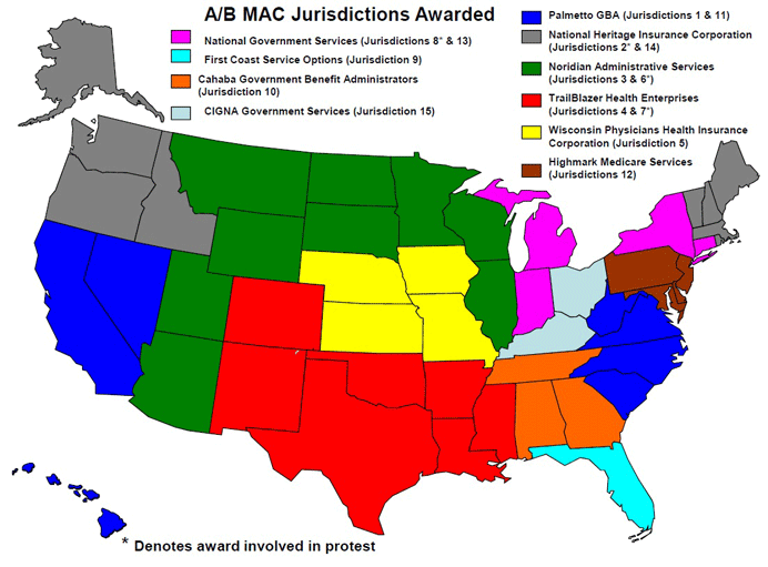 Click below to see larger versions of the maps of the national landscape for the RAC Contractors, Medicaid Integrity Audit Contractors (MICs), Zone Program Integrity Contractors (ZPICs), and Medicare Administrative Contractors (MACs A/B).